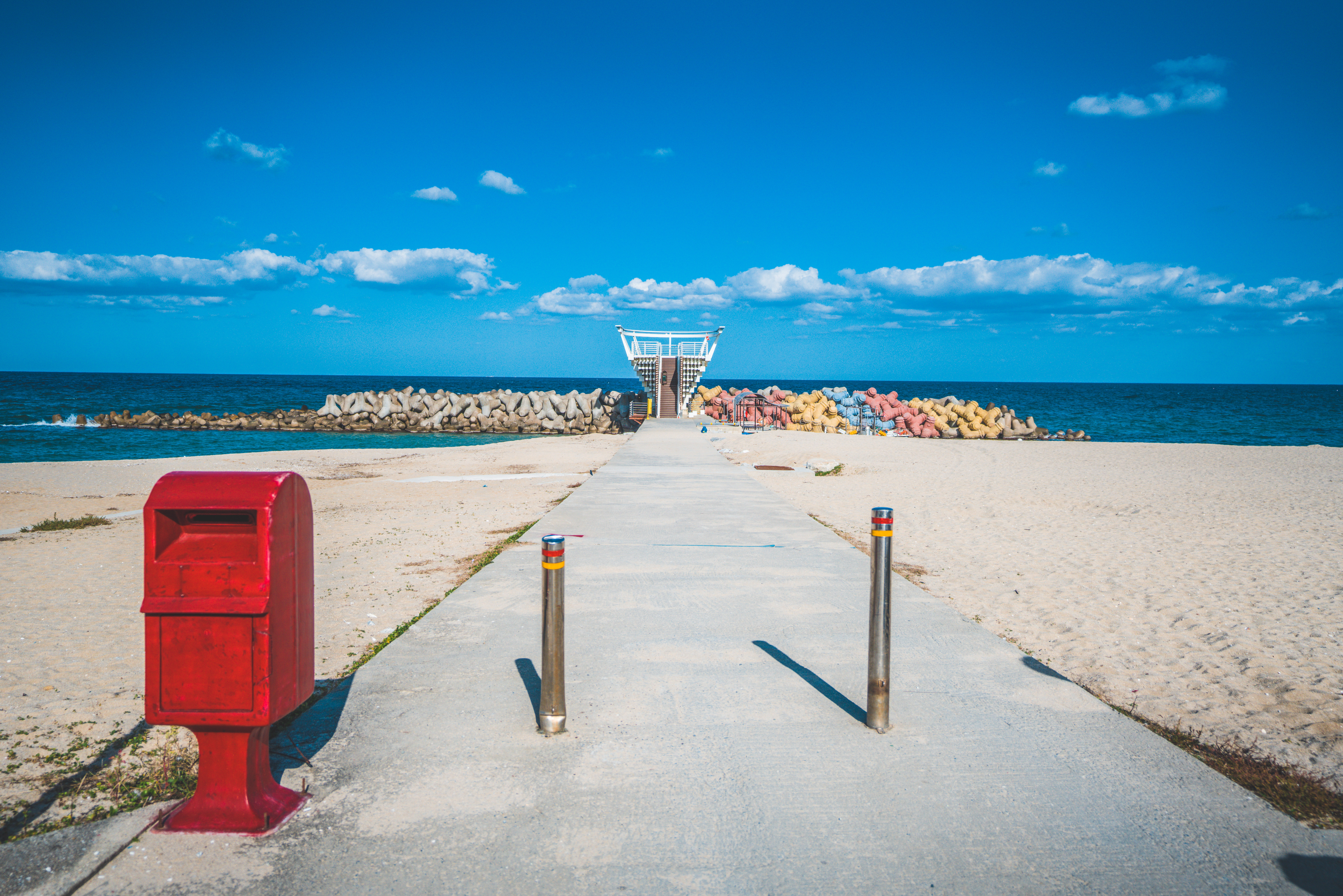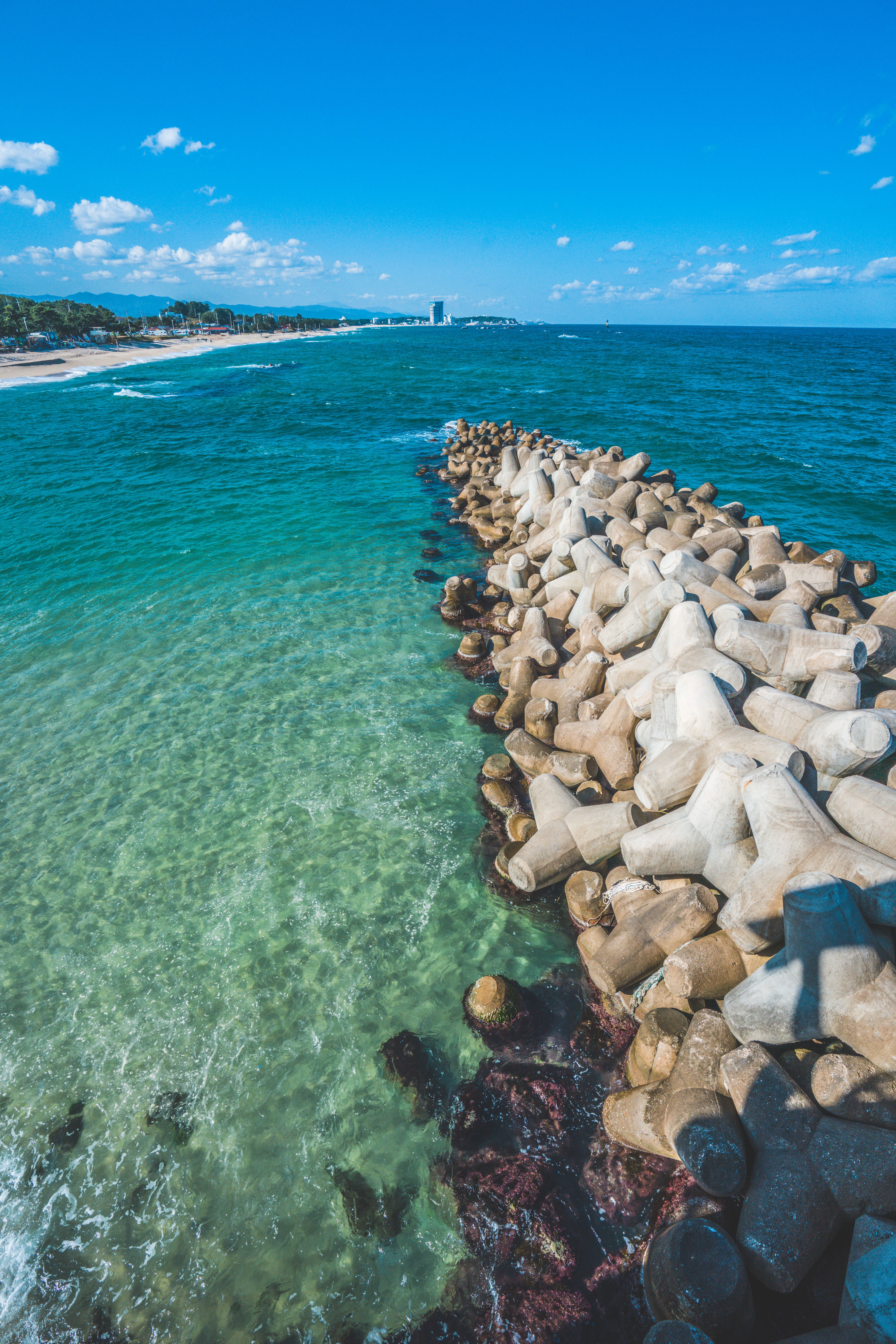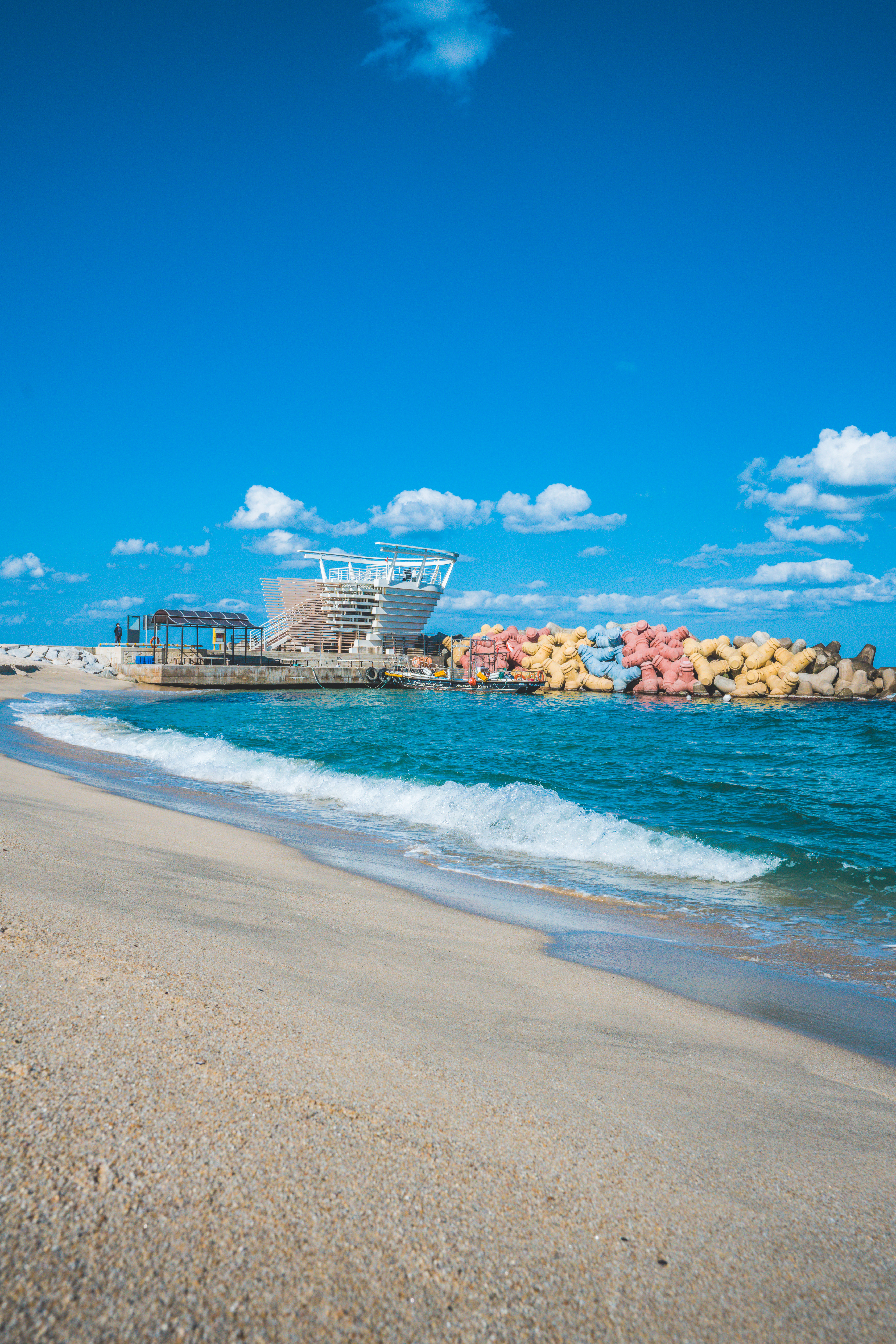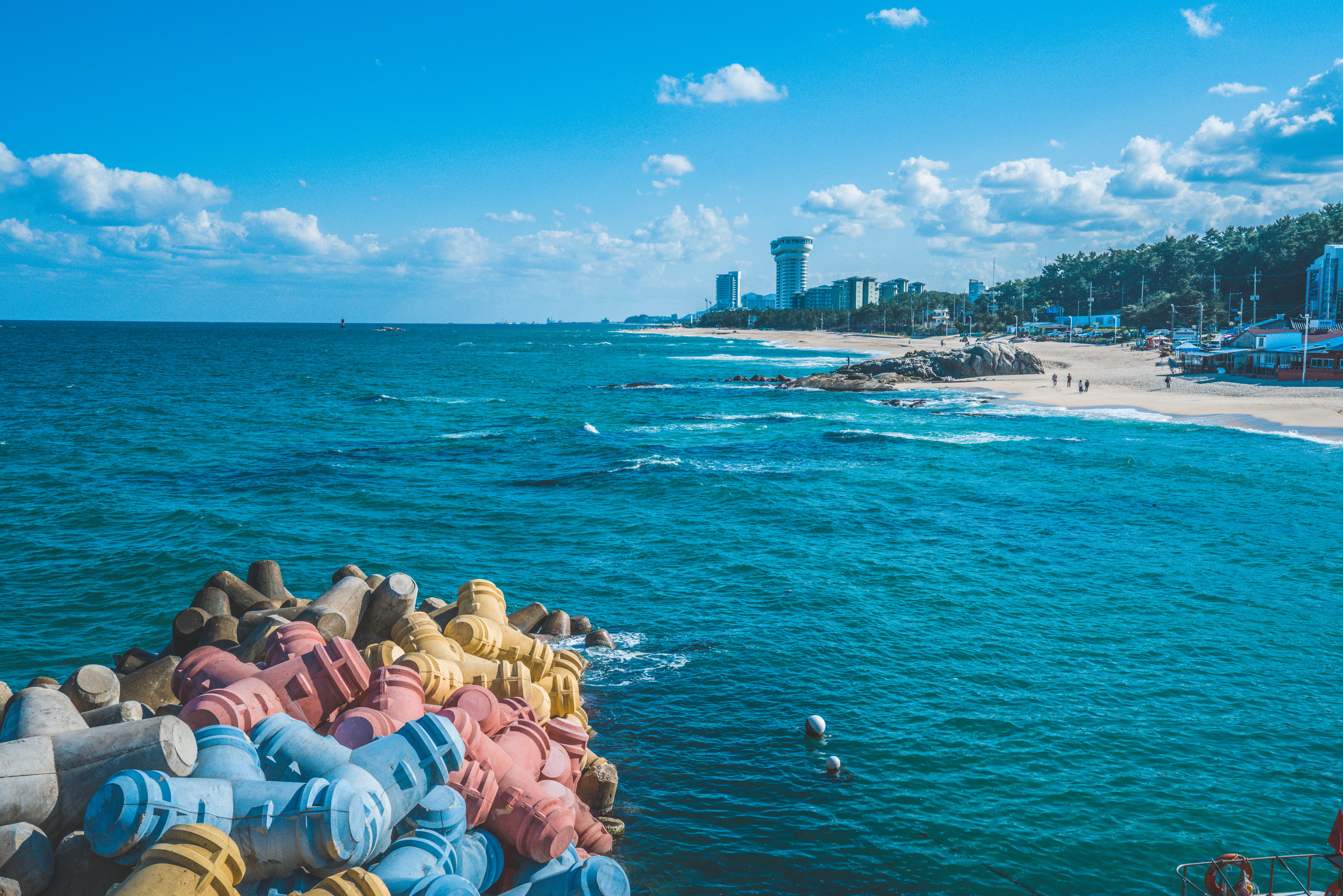 파스텔 톤의 테트라포트가 있습니다.