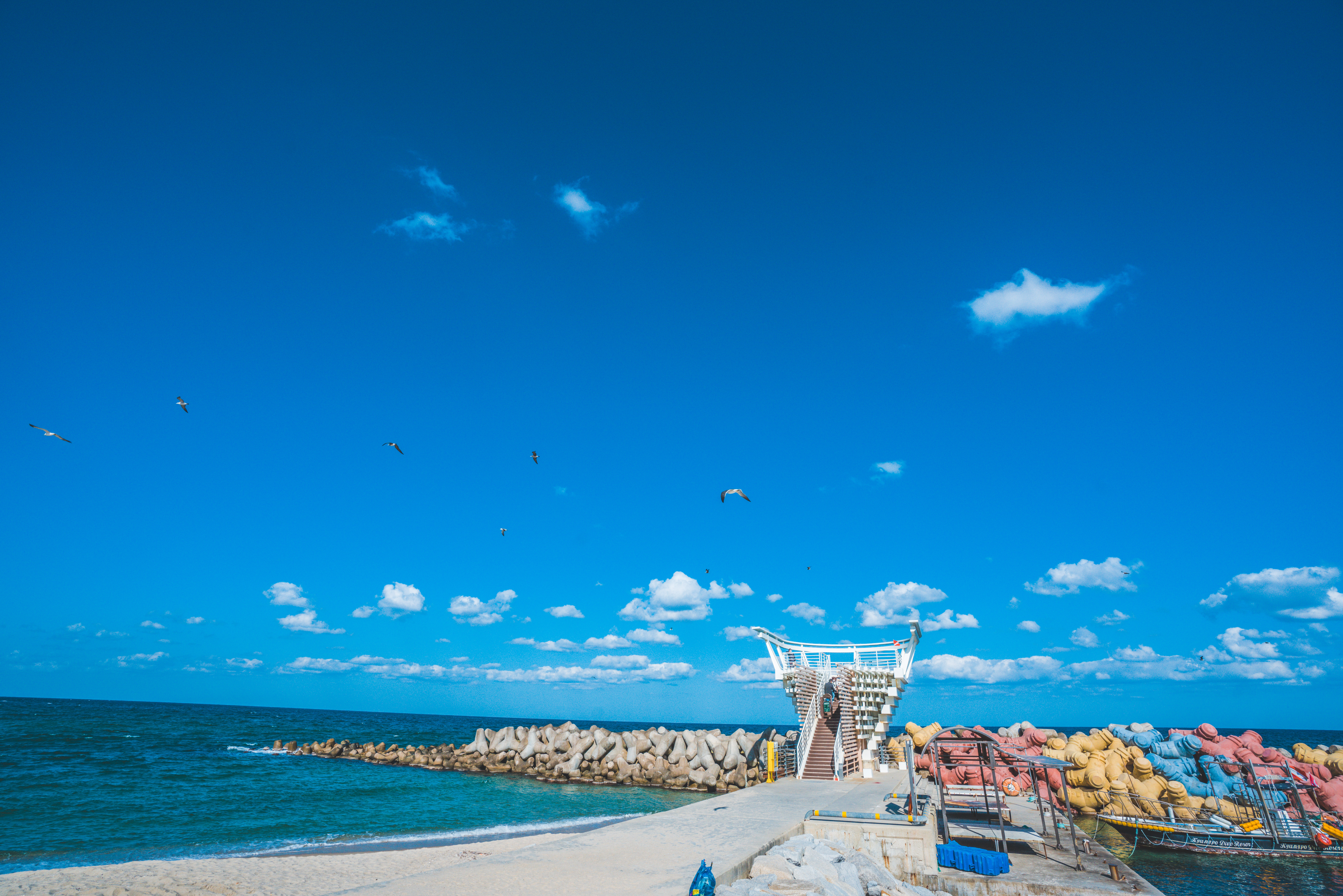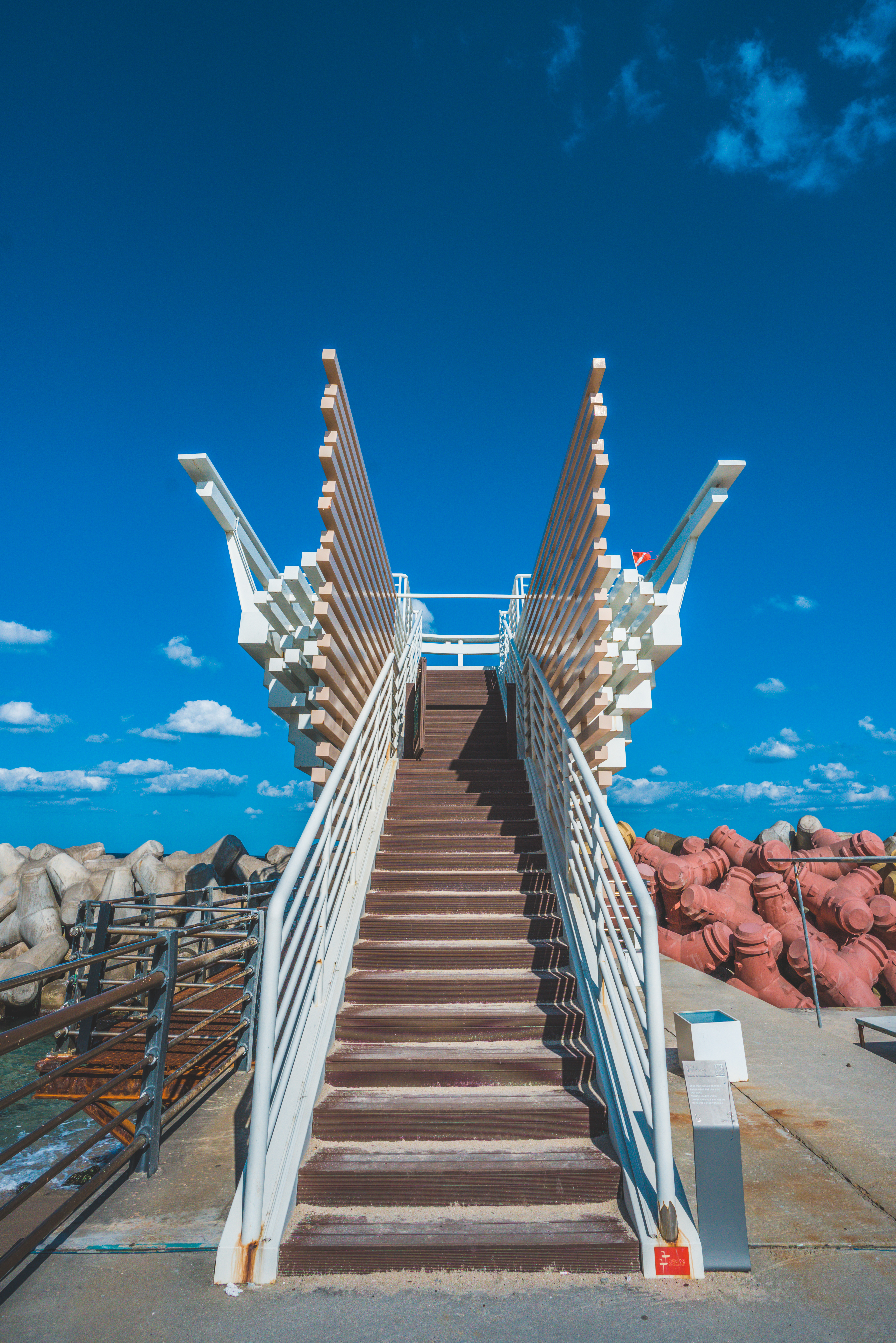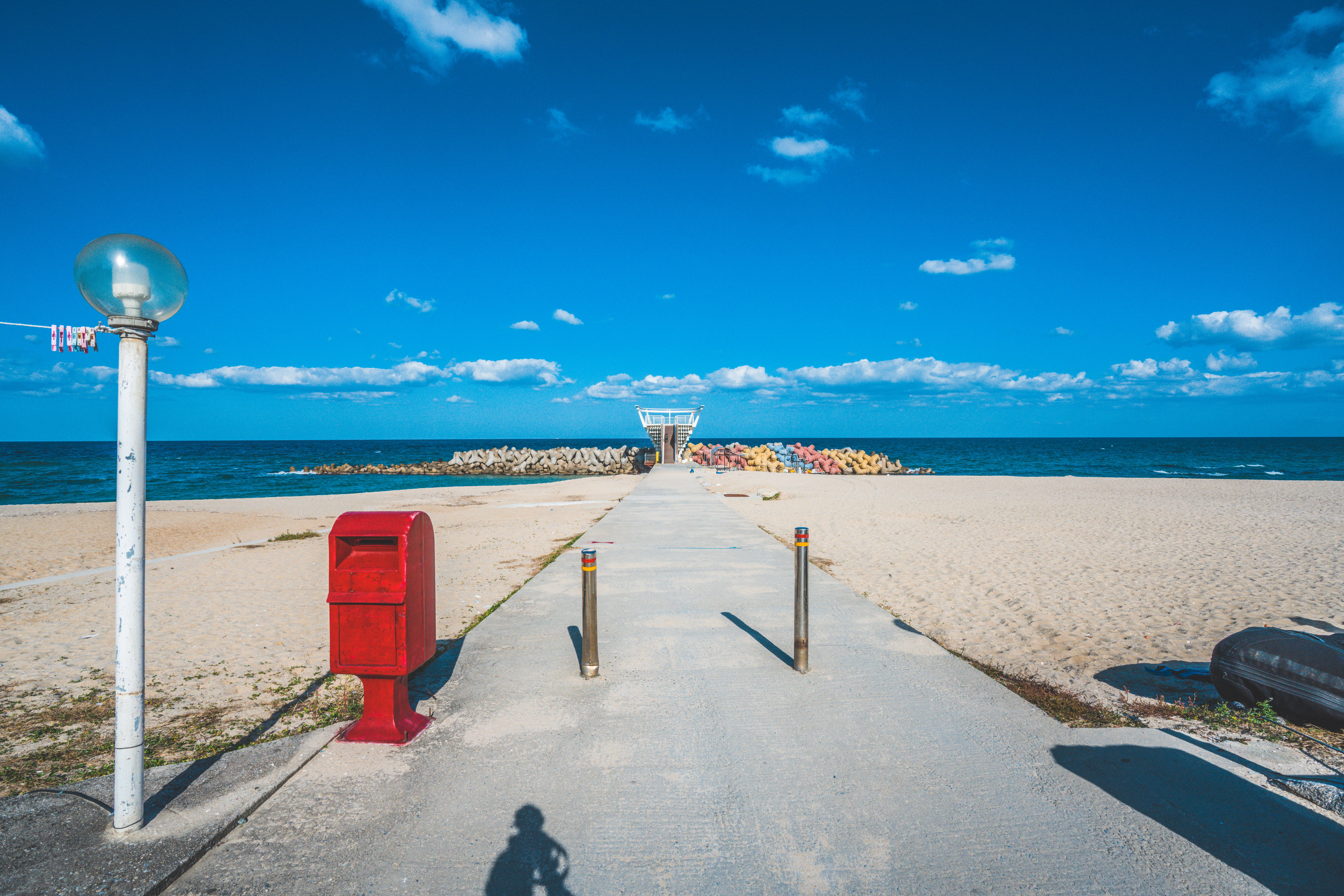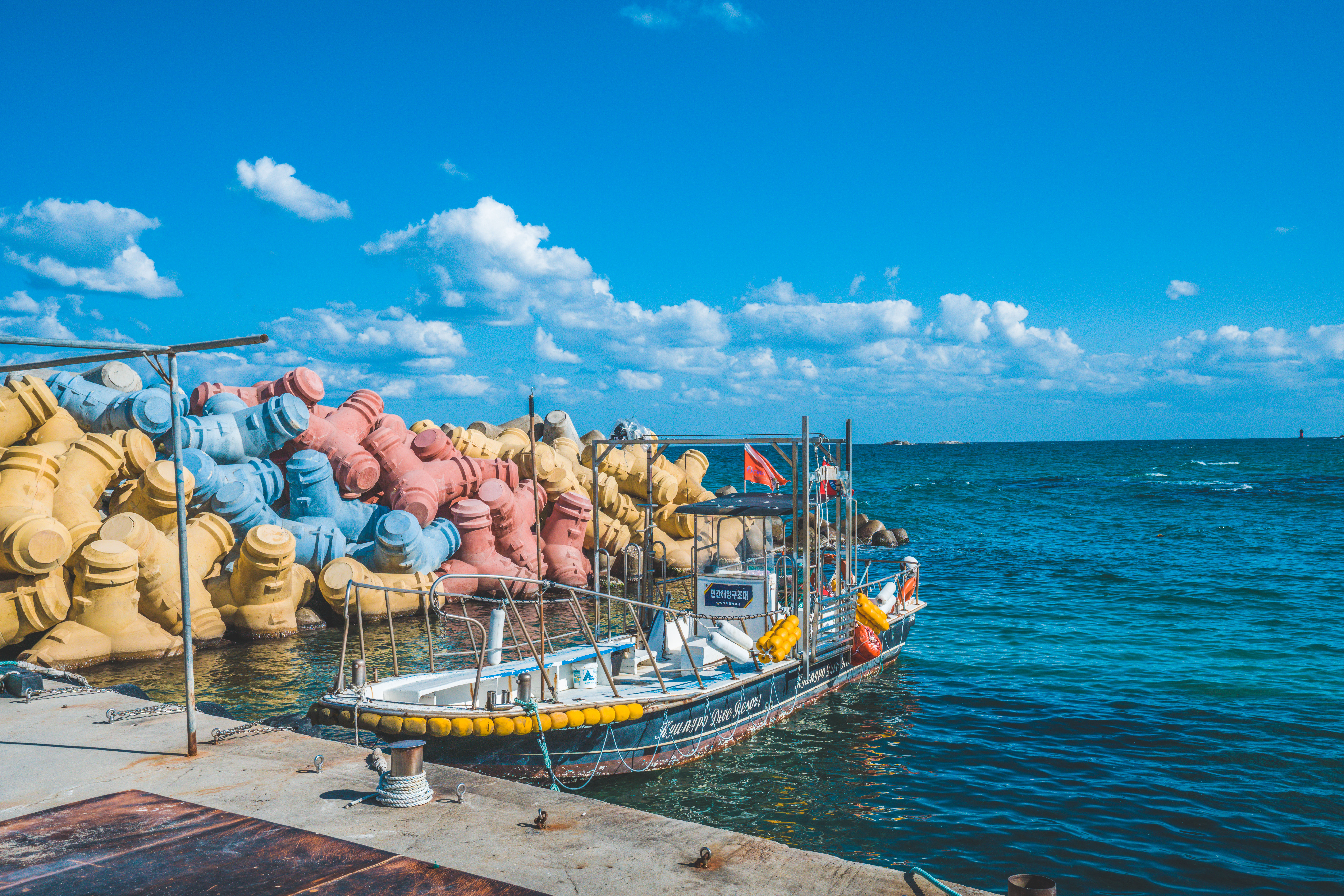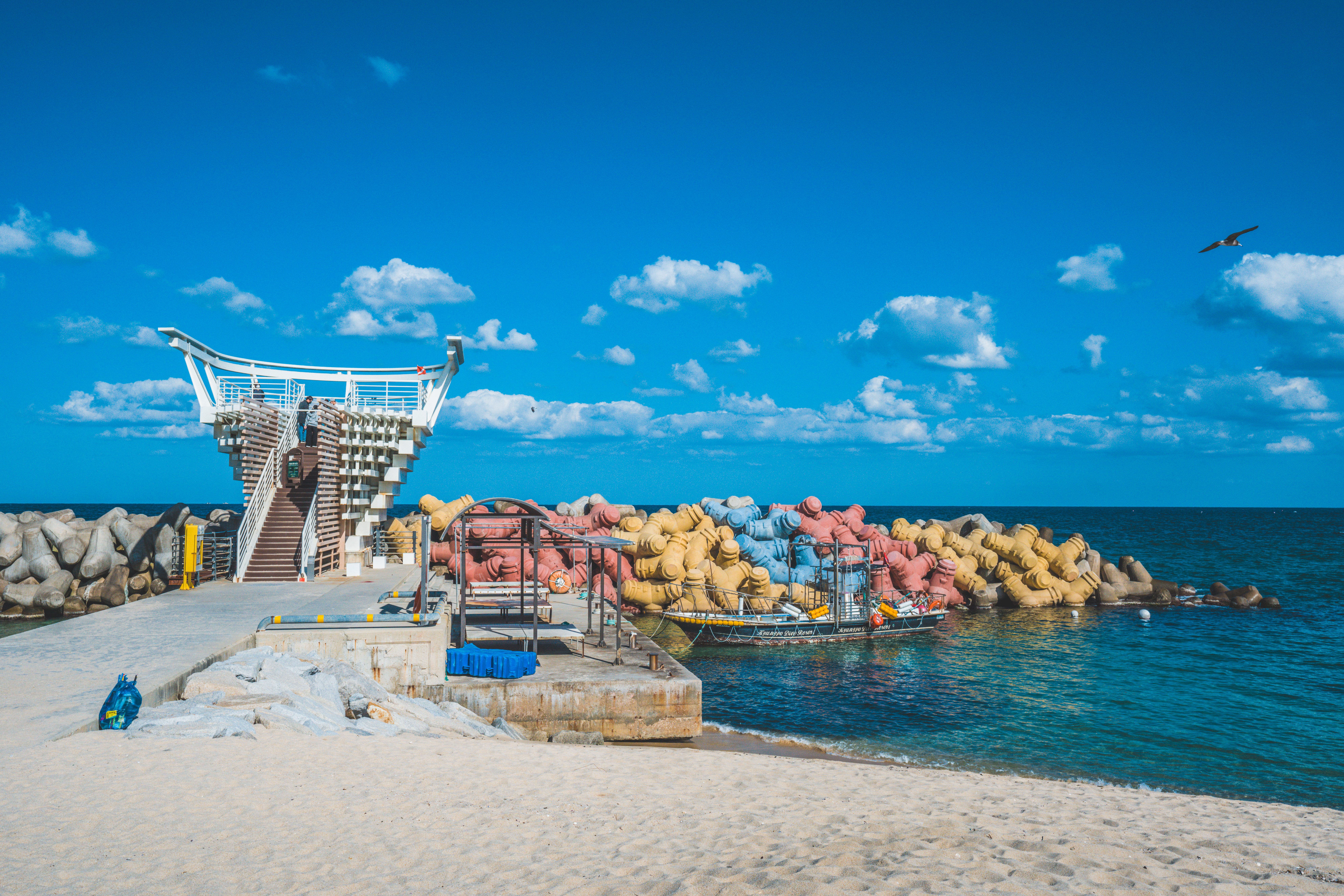 파스텔 톤의 테트라포트가 있습니다.