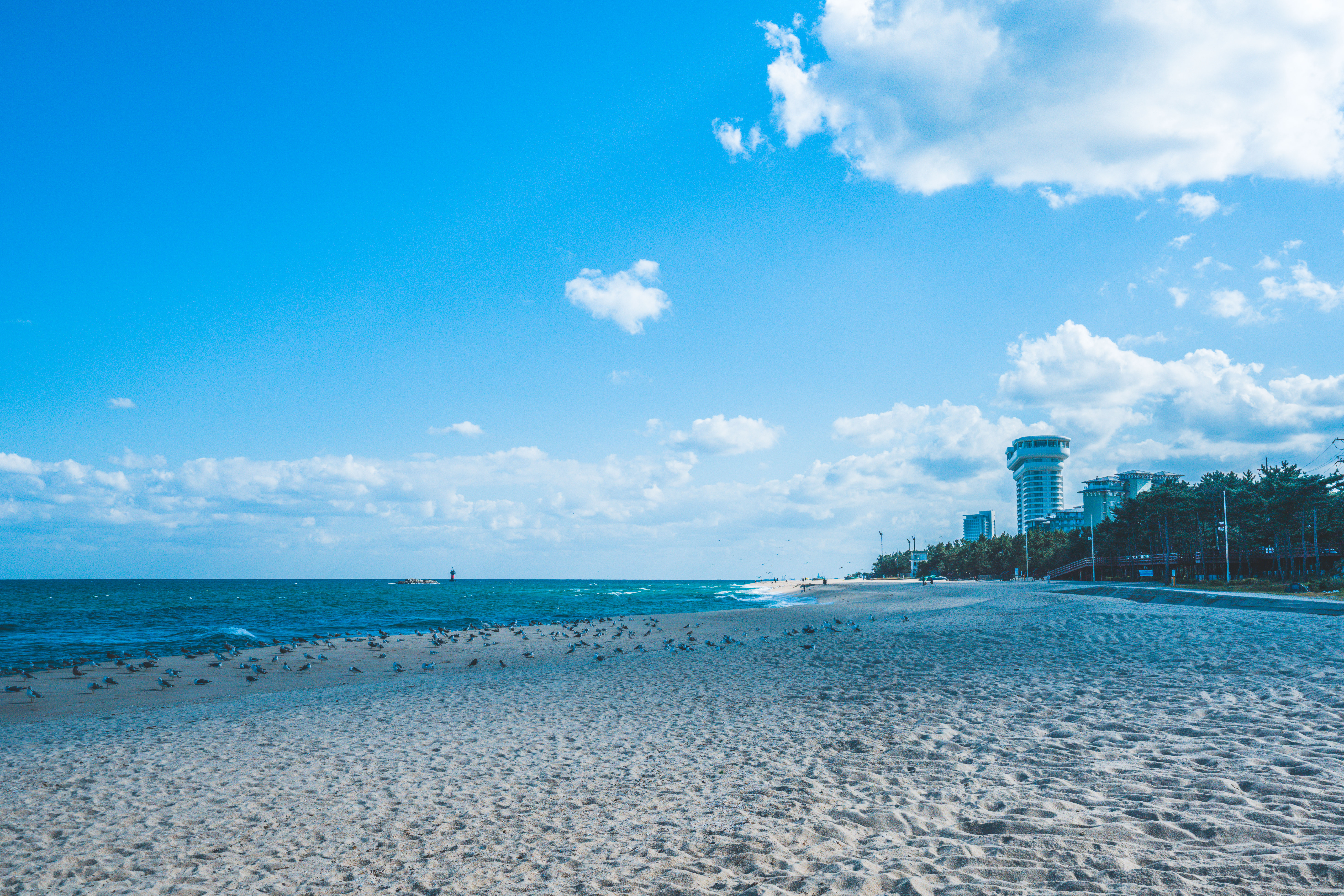 해변에 전망대와 실물로 처음보는