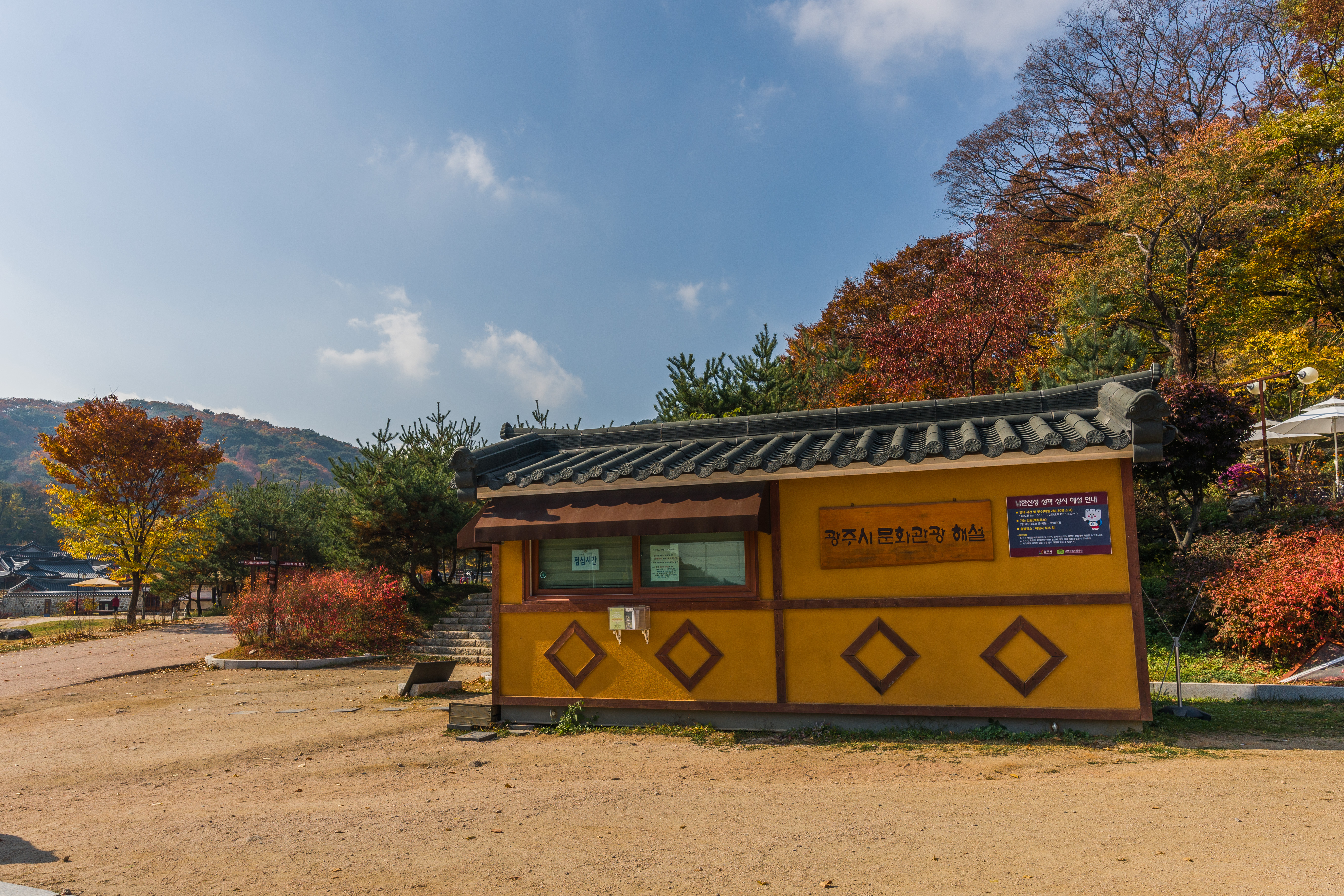 남한산성행궁을 둘러보다가 바깥쪽으로 또 다른 건물이 있는걸 봤는데 그곳을 보기 위해 걸어가고 있습니다.
